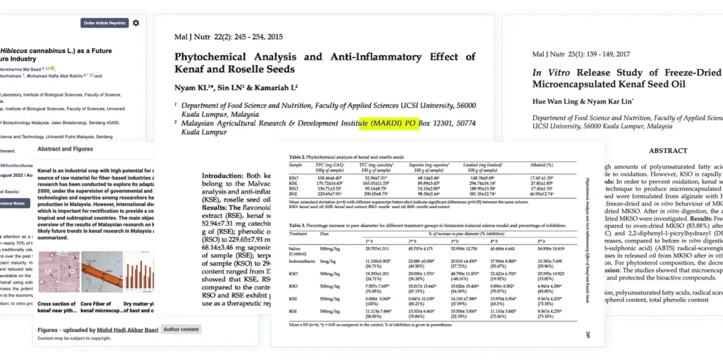 Produk Inovasi Kerjasama Lembaga Kenaf & Tembakau Negara dibawah Kementerian Perladangan dan Komoditi & Institut Penyelidikan Jaminan Makanan UNIVERSITI MALAYSIA KELANTAN