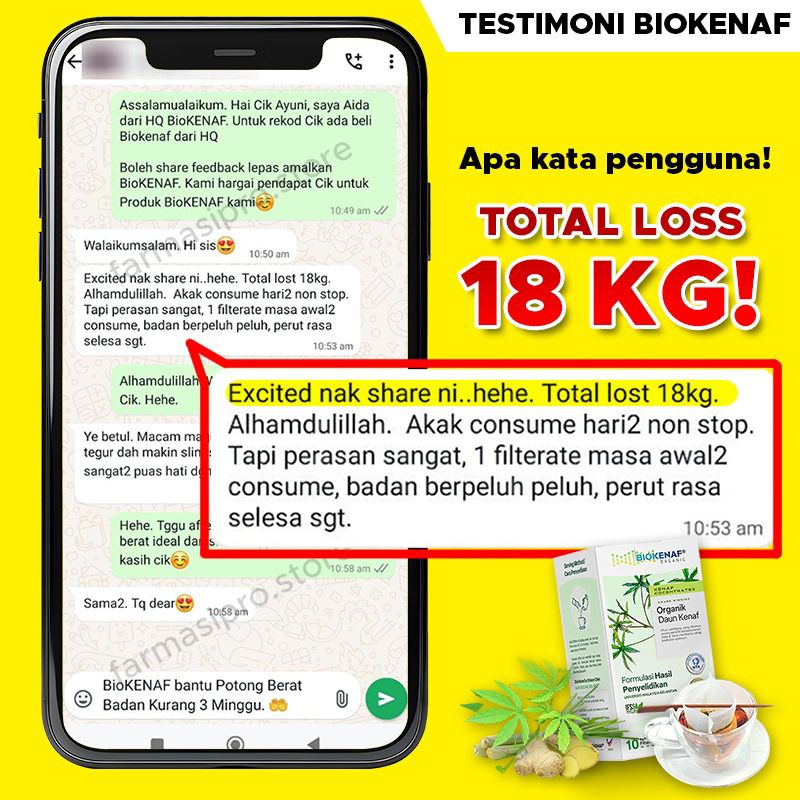 Sebab itu, kami bagi jaminan. Takda siapa pun akan rugi untuk cuba produk BIOKENAF. Cubalah produk ni sekarang. Sekiranya… selepas dah amalkan selama 3 bulan. Kalau tak suka dengan kesan. Rasa tak sedap. Tak suka kotak. Tak suka bau. Tak suka texture. Tak suka dengan apa jua sebab. Pulangkan balik.